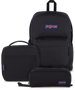 This all-black trio's got your back—night or day. SuperBreak® Plus has a roomy main compartment. H2O pocket. and comfy shoulder straps. Perfect Pouch stores smaller items. Breakfast. lunch. or 12 a.m. snacks stay put in the insulated Lunch Break.